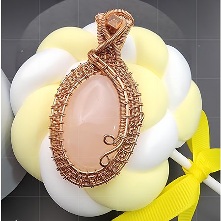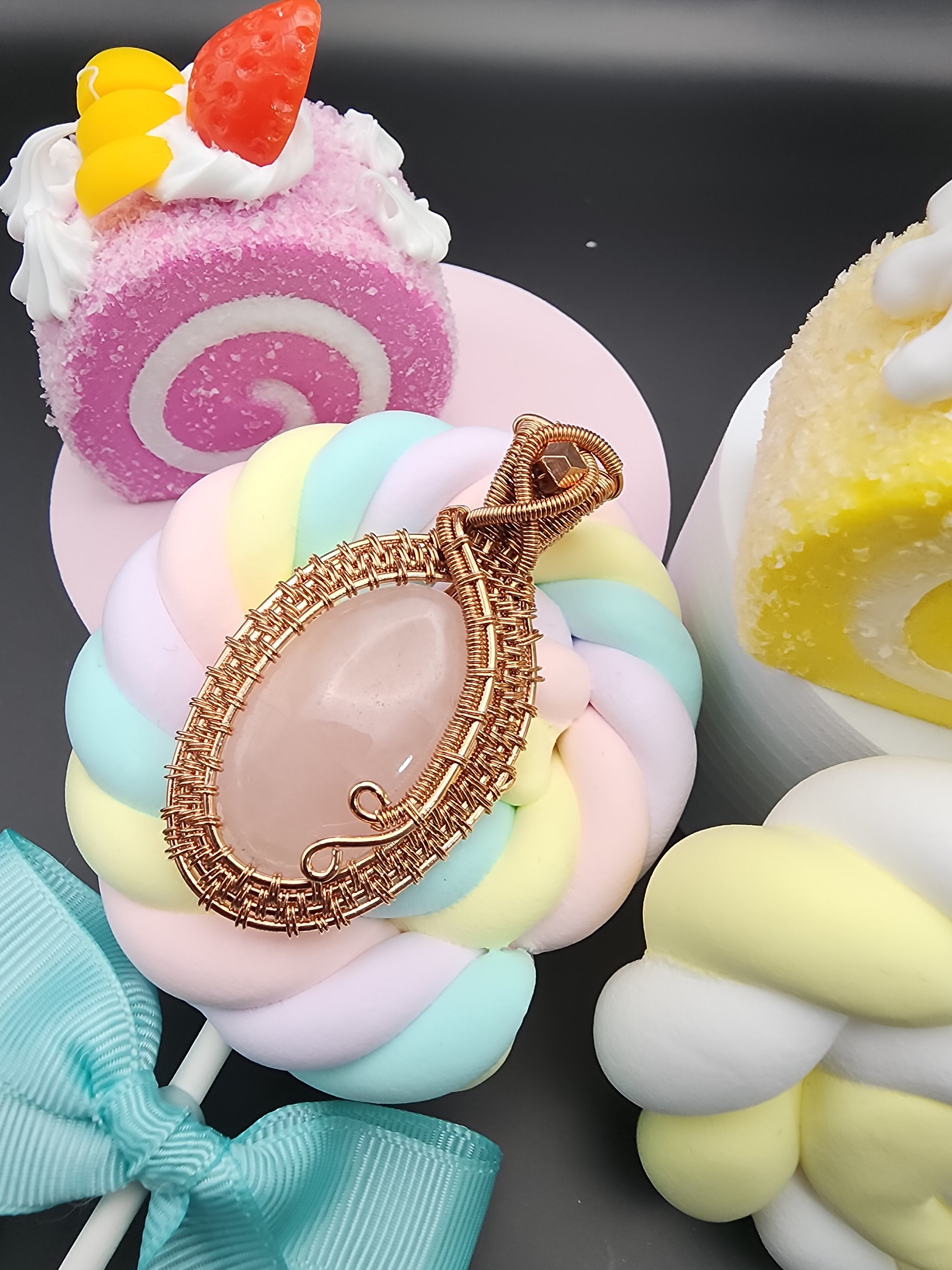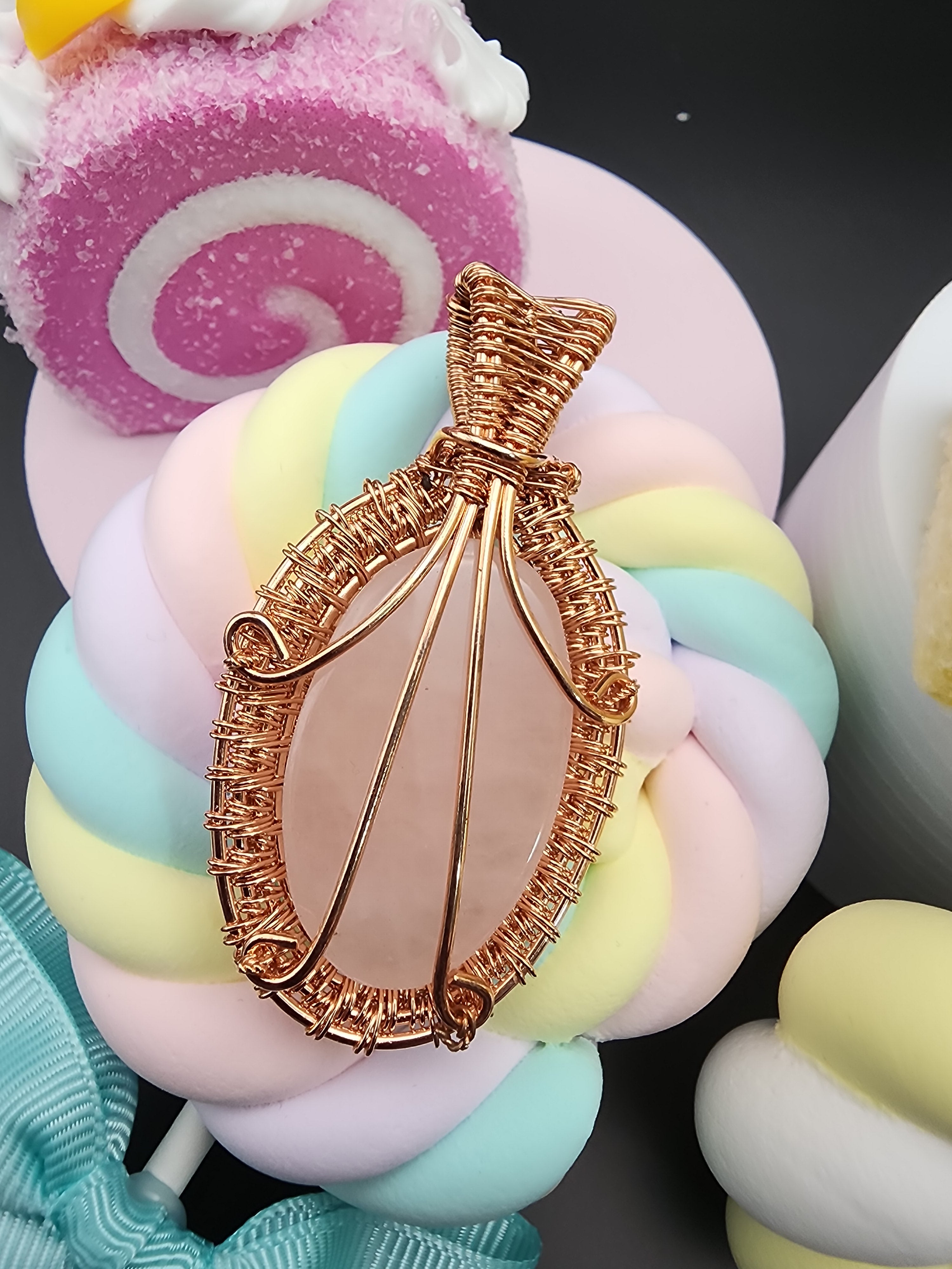 Unique Handmade - Wire Wrapped Rose Quartz Designer Copper Pendant.